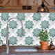 This Tile features an intricately detailed medallion in shades of green and teal. Just the thing for your bathroom remodel or your new kitchen backsplash, This design derives from the tile maker Fay Jones Day. It was inspired by the medallion on her favourite rug.