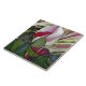 THIS CUSTOM CERAMIC TILE CAN BE PRACTICAL AND/OR DECORATIVE: USE FOR DISPLAY OR AS A TRIVET FOR YOUR HOT DISHES. IT FEATURES RED ANTHURIUM AND INCLUDES GREEN FOLIAGE AND MAUVE-PINK AND WHITE LEAVES IN BACKGROUND.