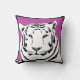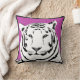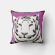 A gorgeous black and white tiger image on cerise pink background with black trim highlighting the edge. The image is duplicated on both the back and front of the cushion.