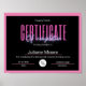 Certificate Of Completion Awards Pink And Black Poster