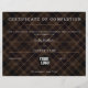Manly and stylish certificate of completion completion with Tartan pattern. Colours : black, brown.