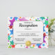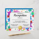 Colourful stars customisable printed Recognition Certificate Award customisable for any course or program. Add your own title and details to this Customisable business or school award certificate Letter size 8.5"x11". Custom design with your high school, kids, middle school, career training, course or seminar. Show your students, volunteers and staff recognition for great attitude or accomplishment with this customisable, personalised certificate. Add your own text online, and order certificates custom made for your program. Leave the signature area blank to add a signature later, or type your name and title, and still add your signature above. Honoree's name can be typed in or the blank line can be left to add hand-written or printed names later.
