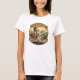 This “Certified Extreme Ironer” women’s T-shirt features a vintage mountain badge design of a fearless adventurer ironing on the edge of a cliff.