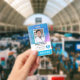 Vertical photo ID badge with template for you to add your details. Ability to use it for multiple positions as you can change information to any other profession. Employee photo and fields for title or role, hospital or company, employee Id number and "home health aid" or any other initials or text describing certification. Logo template area or you may keep our heart with medical herald inside. Back with return information if lost as well as barcode image template. If you do not need to add your barcode or QR code simply select customise further and delete our image. Design with aqua, teal, blue and purple watercolor wash print behind employee photo.