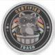 I am pure certified trash! With artwork featuring an adorable retro style racoon sitting in a trash can and giving a thumbs up. The phrase around the art says Certified trash. Art by Sarah ( TechraNova )