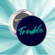 Say it loud with flair—**“Trouble”** never looked so cool. This sleek button in teal script is a badge of boldness and personality. Whether on a denim jacket, backpack, or tote, it’s a stylish nod to your unapologetic energy. A fun accessory for rebels, jokesters, and loveable mischief-makers alike.