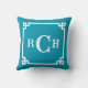 Cerulean Reverse Chinoiserie Greek Key Monogram Cushion
