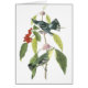 This print is of a pair of Cerulean Warblers. They are a bluish grey birds with darker markings in their wings and tail. In this print are two males perched on a tree branch with red berries.