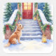 Cesky Terrier Snowy Staircase Christmas Art Square Sticker