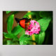A photograph of a Red Lacewing butterfly on a Penta flower in a garden.