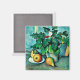 Pot of Primroses and Fruit, fine art still life painting by French Impressionist artist Paul Cezanne.