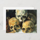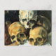 Cezanne Pyramid of Skulls postcard. Oil painting on canvas from 1901. During the final years of his life, Paul Cezanne devoted a number of different still life paintings to the theme of death and human vanity. Pyramid of skulls is arguably his most powerful skull painting. The work features three human skulls stacked on a table gazing towards the viewer without lower jaws. A great gift for fans of Cezanne, post-impressionism, skull paintings, and French art.