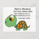 Funny cartoon turtle announces that you're moving on a postcard. He allows you to put all your new information on the card.
