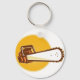 illustration of a chain saw viewed from the front at low angle with sunburst and circle in the background