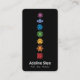 Simple design with the chakra energy points in a vertical line on the front of the card, with a colourful mandala on the back.