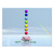 Colourful spheres for chakras upon beautiful lily flower and water by day with rainbow