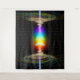 A gorgeous black wall tapestry featuring an illustration of a person's energetic body in meditation with a pillar of light coming down from the heavens; activating the chakras and creating a Divine Yogic Toroidal Field around the body. It is this full energy activation that invites the mystical experiences of the seeker. The toroidal field connects the yogi/yogini to the Existential grid of Consciousness and causes instantaneous Enlightenment. A dramatic and perfect inspirational image for your home or yoga studio!