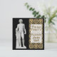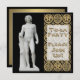 Square champagne shimmer invitation with an image of Dionysus, God of wine and wine making and ritual madness, leaning on a stump of a grape vine and holding a bunch of grapes on black. On the right is an image of a black and gold Chalcedonian design. The back has an image of brushed gold with a black border. See matching puzzle invitation, confetti, favour box and gift bags. See the entire Toga Invitation collection in the INVITES | Invitations & Cards section.