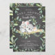 Cute baby shower invitation featuring a sweet baby Koala with mum framed with natural green watercolor leaves set on a popular chalkboard background. Flip our invite over to view a matching green leaf back for an extra special touch..