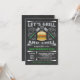 Let's grill and chill with the awesome Chalkboard backyard barbecue BBQ party invitations. Features a big hamburger and spatulas with fun typography on a chalkboard background. A rough texture if on the top half of the illustration. Hand drawn illustration by McBooboo's.