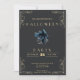 This Halloween party invitation exudes a sense of eerie elegance with its black background and sophisticated gold corner borders and writing. The contrast between the dark backdrop and the gleaming gold accents sets a mysterious and luxurious tone, perfect for a Halloween soirée.