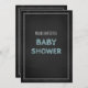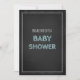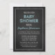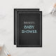 Personalised baby shower invitations in elegant and fun chalkboard style pattern with light pastel blue text. Customisable with your text, contact us to request a colour change. Perfect for a baby boy.
