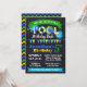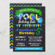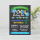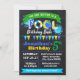 Birthday pool party invitation on a green, blue and yellow colour scheme, suitable for any age. Add your own wording into the template, to more customisation (font colour, font style, background), click on personalise, scroll down and click on link "click to customise further"