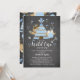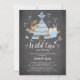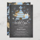 Adorable wild one baby shower invitation featuring a cute forest owl, bear & fox with a blue teepee wet on a chalkboard background. Flip our invitation over to view a matching back for an extra special touch.