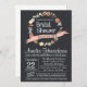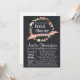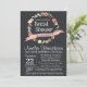 A whimsical Bridal Shower Invitation with a hand drawn floral wreath, cute ribbon, fun poster style text on a trendy chalkboard background.
