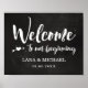 Welcome to the wedding poster with a trendy brush script against a chalkboardesque background.