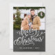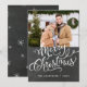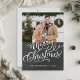 Custom-designed holiday photo card featuring "Merry Christmas" hand lettering design on chalkboard background.
