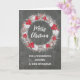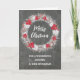 Merry Christmas for cousin and her husband card with rustic country chalkboard pattern and snowy wreath with poinsettias.