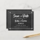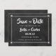 Personalise with your names and details on this cool chalkboard save the date card featuring cute cupids.