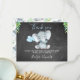 This chalkboard elephant baby shower thank you card features a cute elephant and some balloons on a scanned chalkboard background. The top corners of the card features some green tropical foliage. This boy's chalkboard baby shower thank you card is ready to be personalised. Same design baby shower invitation is available at the store. For more elephant themed baby shower invitations and than you cards please visit the store.