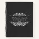 Classy family cookbook with a vintage look- Background on front, spine, and back is charcoal black, faux chalkboard look. Front has elegant lettering that has printed, personalised family name in script and cookbook underneath. Framed by antique, vintage style scroll borders on top and bottom in palest grey, almost white that looks like chalk.Note: All images are printed. Not chalkboard surface. Inside pages printed specifically for recipes. Perfect family gift for family members at Christmas, for family reunions, housewarming gift, gift for new bride, and for saving those precious Mum's recipes. Sophisticated and elegant , but simple and rustic at the same time. Will appeal to many different tastes and styles. Will look great in both a rustic country kitchen, or elegant, modern black and white kitchen decor. Visit our online Zazzle shop for more vintage chalkboard designs and family recipe notebooks.