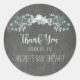 Baby shower thank you favour tag sticker in rustic country chalkboard pattern with vintage delicate pastel blue whimsical flowers. Customisable with your own text. The perfect way to decorate your baby shower favours and thank your guests for being a part of your special day.