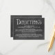 Help guests find their way with this chalkboard directions card featuring bold hand-drawn typography and ample space for detailed driving instructions. The dark textured background with white lettering offers a casual yet polished look that coordinates with your chalkboard wedding suite. All text is fully editable including venue name, address, and custom directions.