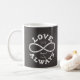 Celebrate the infinite love between your favourite bride and groom with this custom mug! A white chalk infinity symbol and “Love Always” text surrounds a couple's names and wedding date on a black chalkboard background. Makes a beautiful, modern, personalised gift.