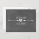 A fall wedding save the date postcard featuring an illustration of a heart between to arrows. Background is chalkboard inspired. Personalise the text on opposite side.