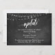 Over a background depicting a textured black chalkboard surface, I've placed graphics depicting light strings draped along the top. The word "update" on the front and "love" on the back were created using a modern, swirling script font. Use the template fields to add your personal details and make this distinctive design your own. Please reach out with any special requests or for customising assistance. // 73 //