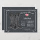 Modern Lingerie Bridal Shower Invitation featuring a black velvet & lace corset set on a chic chalkboard background with a pretty pink floral accent and a whimsical frame. Flip our lingerie bridal shower invite over to view a matching back for an extra special touch. Perfect for a fall, winter, spring or fall lingerie shower.