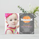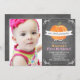 This sweet and cute pumpkin birthday party invitation features a watercolor pumpkin on a chalkboard background. This invite makes for a sweet design perfect for any kind of fall birthday party. Make it special by adding a photo and choosing a textured paper.