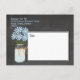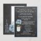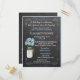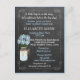 Popular chic, vintage chalkboard look, Baby shower invitation in blue. Rustic country mason jar filled with pretty blue flowers, blue and chalkboard look background print and text. Baby shower invitation is personalised. Add matching products. Please visit my store "The Hungarican Princess" at www.zazzle.com/hungaricanprincess*. Look in my "Oh Baby" department category. Congratulations! The "blue colour" hex # is BFE4FF.