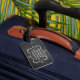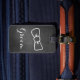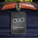 Fun groom's luggage tag done in a charcoal grey chalkboard look, with white outline graphics of a bow tie, on the front and a decorative white frame, on the back. Personalise the white text to suit your needs. Matching bride's luggage tag is available.