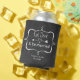 Wedding themed can cooler, done in a vintage grey chalkboard look, with white graphics of a heart with arrow and decorative frame with text reading Eat, drink, and be married. Great wedding favours for your guests or wedding party. Personalise the custom white text, on the front bottom, to suit your needs.