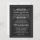 Vintage Chalkboard Wedding Collection -- Swirly, curly, fancy floral hearts banner with beautiful retro marquee style typography makes an eye-catching black and white wedding invitation. Add your monogram initials, names and wedding info in this easy to use template. Elegant mixed script and letterpress style type is suitable for both formal or semi-formal theme. Perfect for trendy modern weddings with a sophisticated touch of classic fun for the traditional bride and groom. Please contact us for help with customisation if you need additional room for your wedding details. Optional monogrammed art deco motif on back.