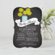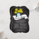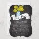 Modern chic Chalkboard Mason Jar Baby Shower invitation featuring a contemporary ribbon banner with a fancy script and colourful fun mum yellow flowers for a gender neutral baby shower for a baby girl or baby boy. A bit of vintage charm with a modern flair girl baby shower invite with typographic text. Perfect baby shower invitation for a garden baby shower, spring baby shower, or summer baby shower.