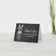 Modern black chalkboard wedding thank you cards with dandelions drawing and mason jar decorated with white vintage lace.