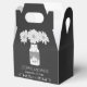 Popular chalkboard style favour box is adorned with an original illustration of a trendy mason jar holding white chrysanthemum flowers and a heart personalised with the bride and groom's initials. On the back, add your own personal message or delete the sample text to remove the wording. Whimsical typography gives the box a casually elegant look. Coordinating items also available. Some graphics by clipartSingles at store etsy.com