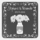 Popular chalkboard style wedding sticker is by swirl scroll with hearts border and an original illustration of a trendy mason jar holding white chrysanthemum flowers and a heart personalised with the bride and groom's initials given a chalk effect. Whimsical typography gives the sticker a casually elegant look. Coordinating items also available. Some graphics by clipartSingles at store etsy.com